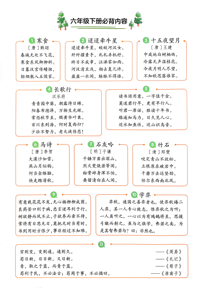 为帮助学生在寒假期间高效预习,知学资源网整理发布了《小学语文1-6年级下册寒假必背内容(2026版)》。本资料紧扣下册教材核心内容,涵盖古诗文、重点课文段落、生字词汇等必背知识点,分年级系统编排,适合假期自主预习与积累。提前掌握重点,轻松迎接新学期,欢迎家长及教师下载使用!